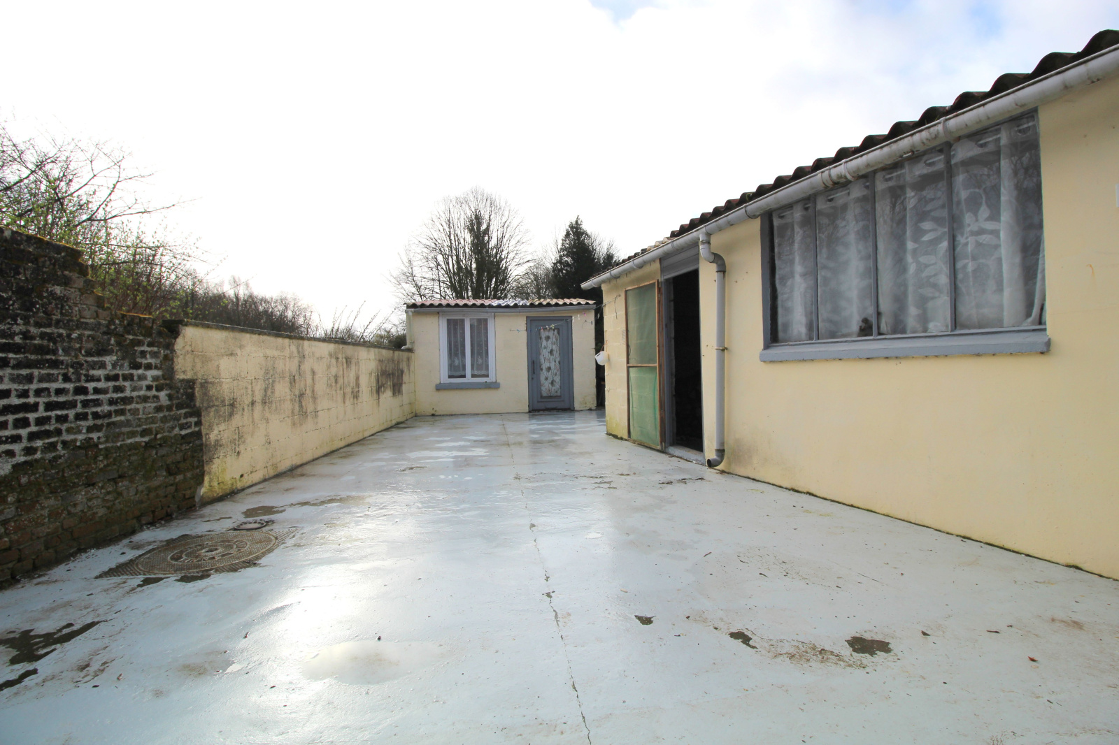 Une grande cour exposée SUD, avec espace atelier et dépendances.