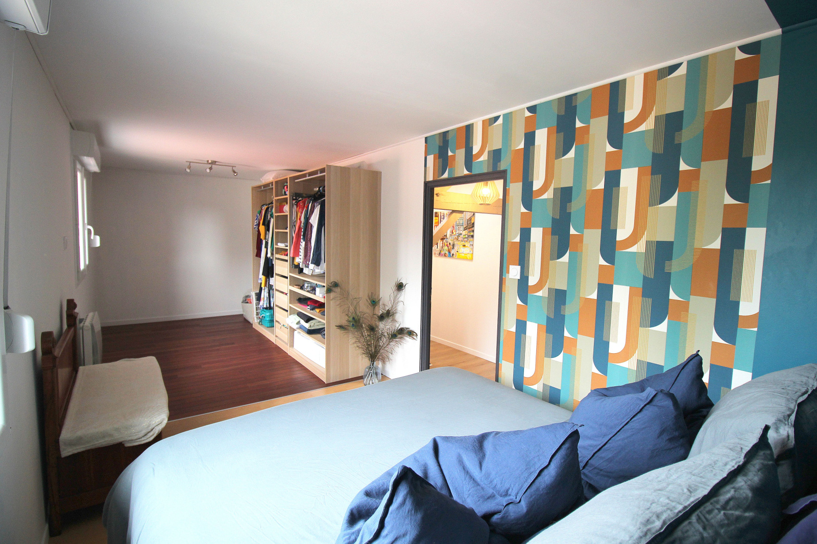 À l’étage, le palier mène à quatre chambres de belles tailles, dont une suite parentale offrant tout le confort attendu (parquet pont de bateau récent, arrivée et évacuation d'eau présentes).