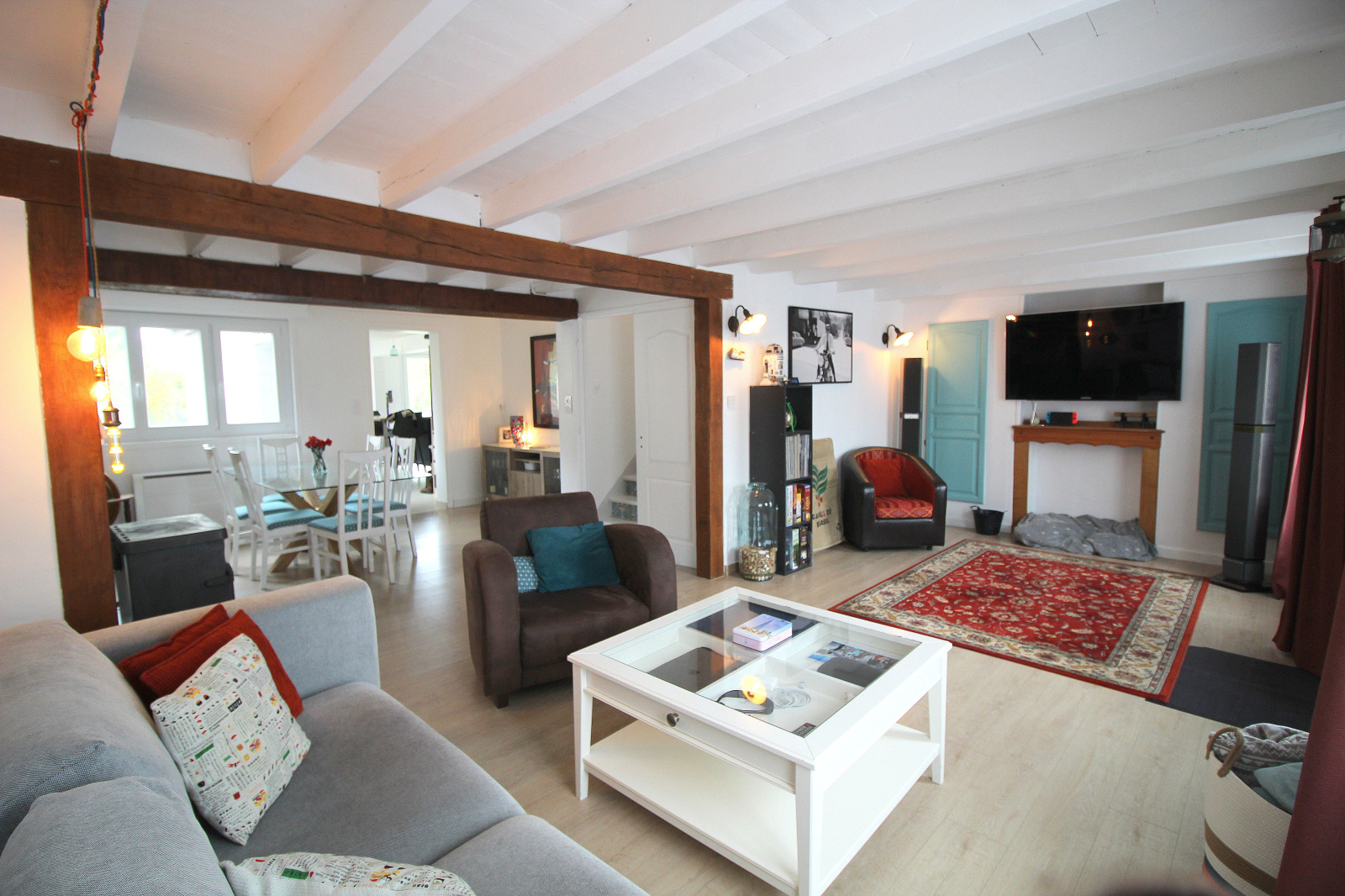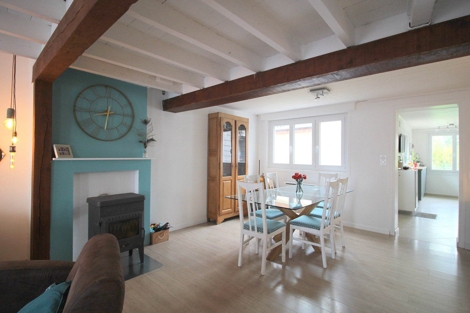 Ce bien propose de beaux volumes et un aménagement chaleureux : profitez d'un salon-séjour cocooning avec poêle à bois, d’une salle à manger conviviale, et d’une cuisine récente, aménagée & équipée avec une grande baie vitrée ouvrant sur la terrasse et le jardin.