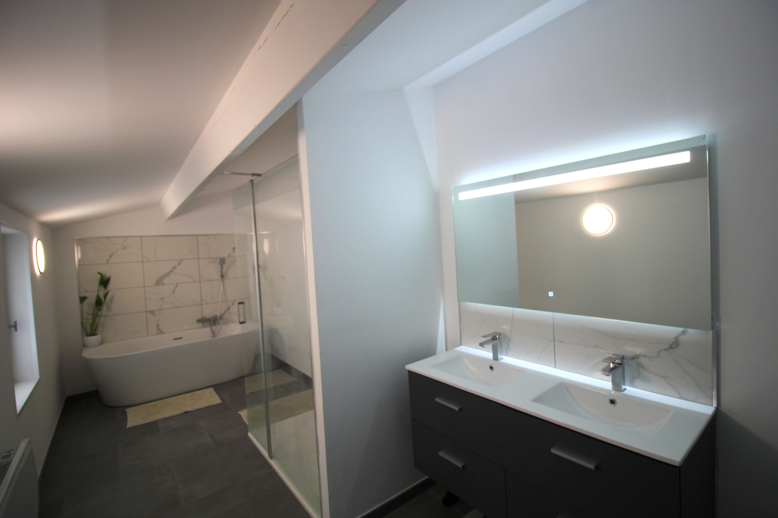 Au coeur du village, cette maison à l'esprit contemporain est érigée sur une parcelle de plus de 400m².