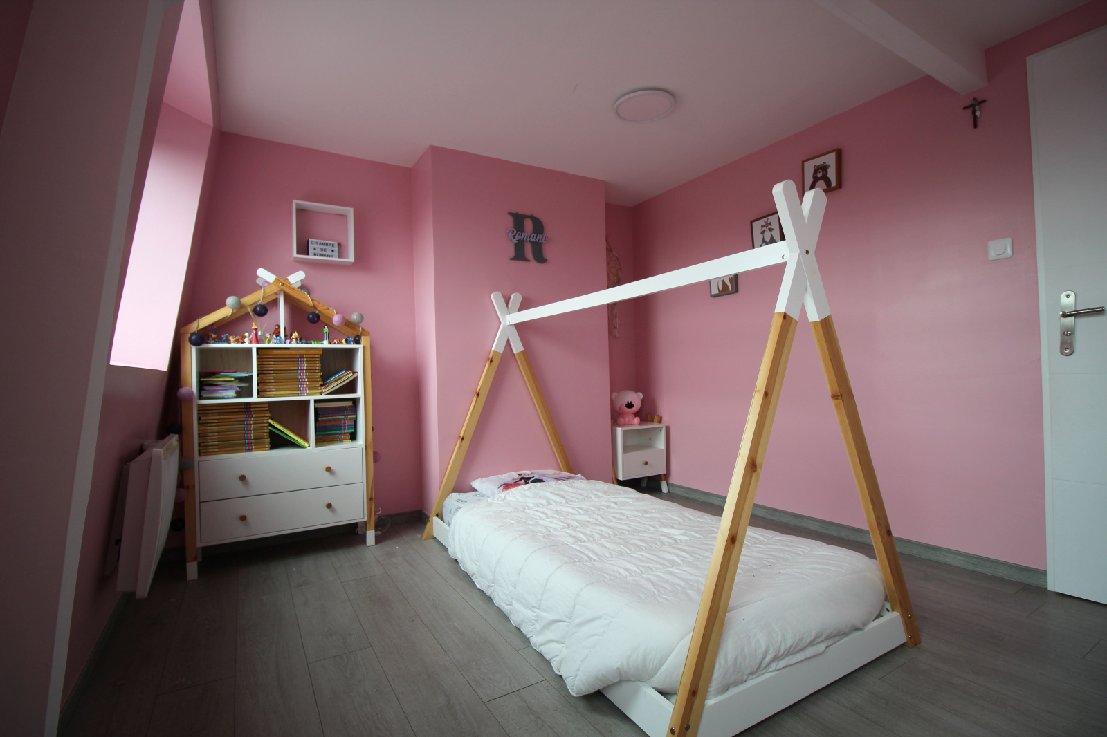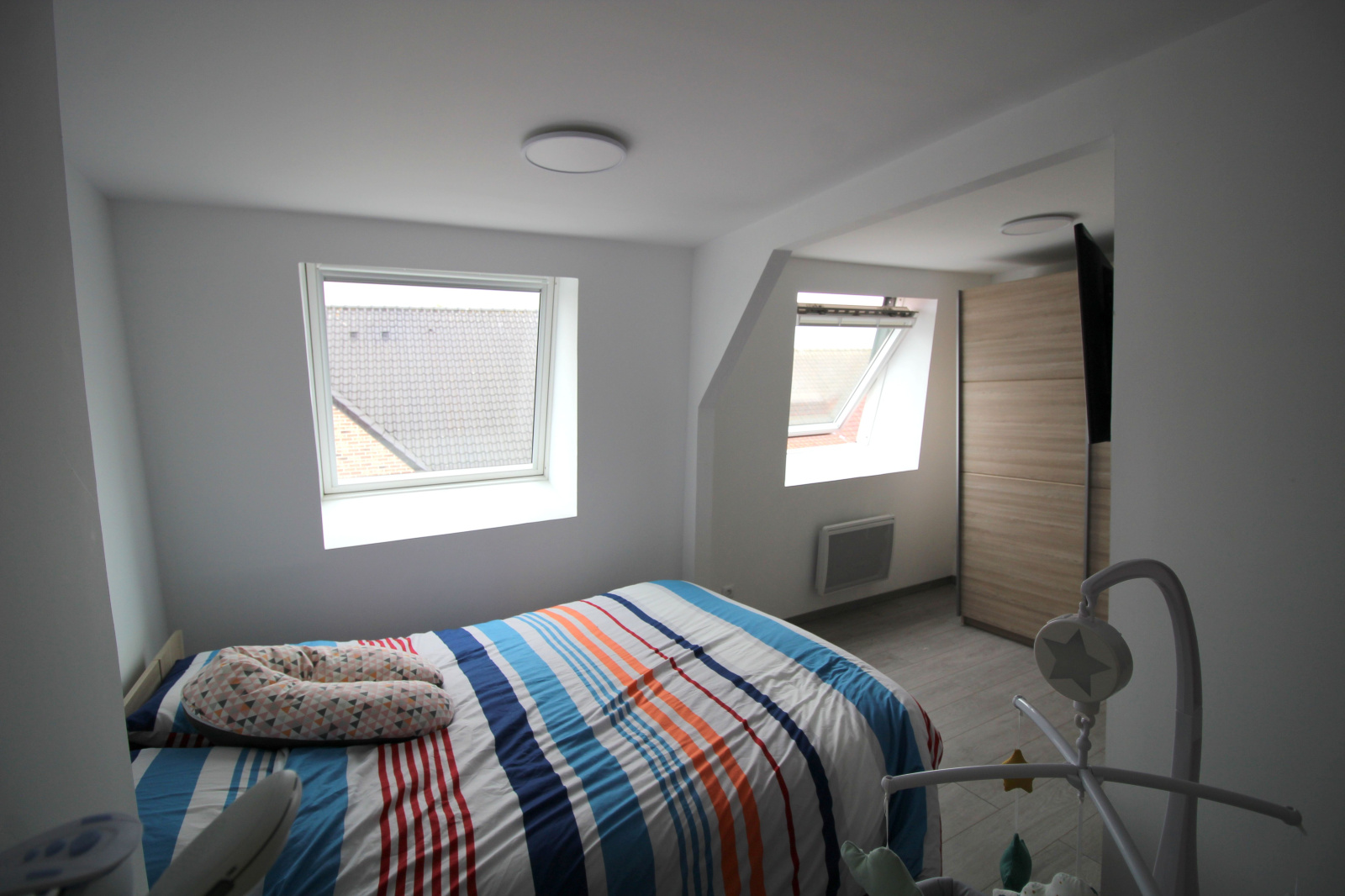 A l'étage deux chambres de 11m² et 13m², puis une troisième chambre au dernier étage.