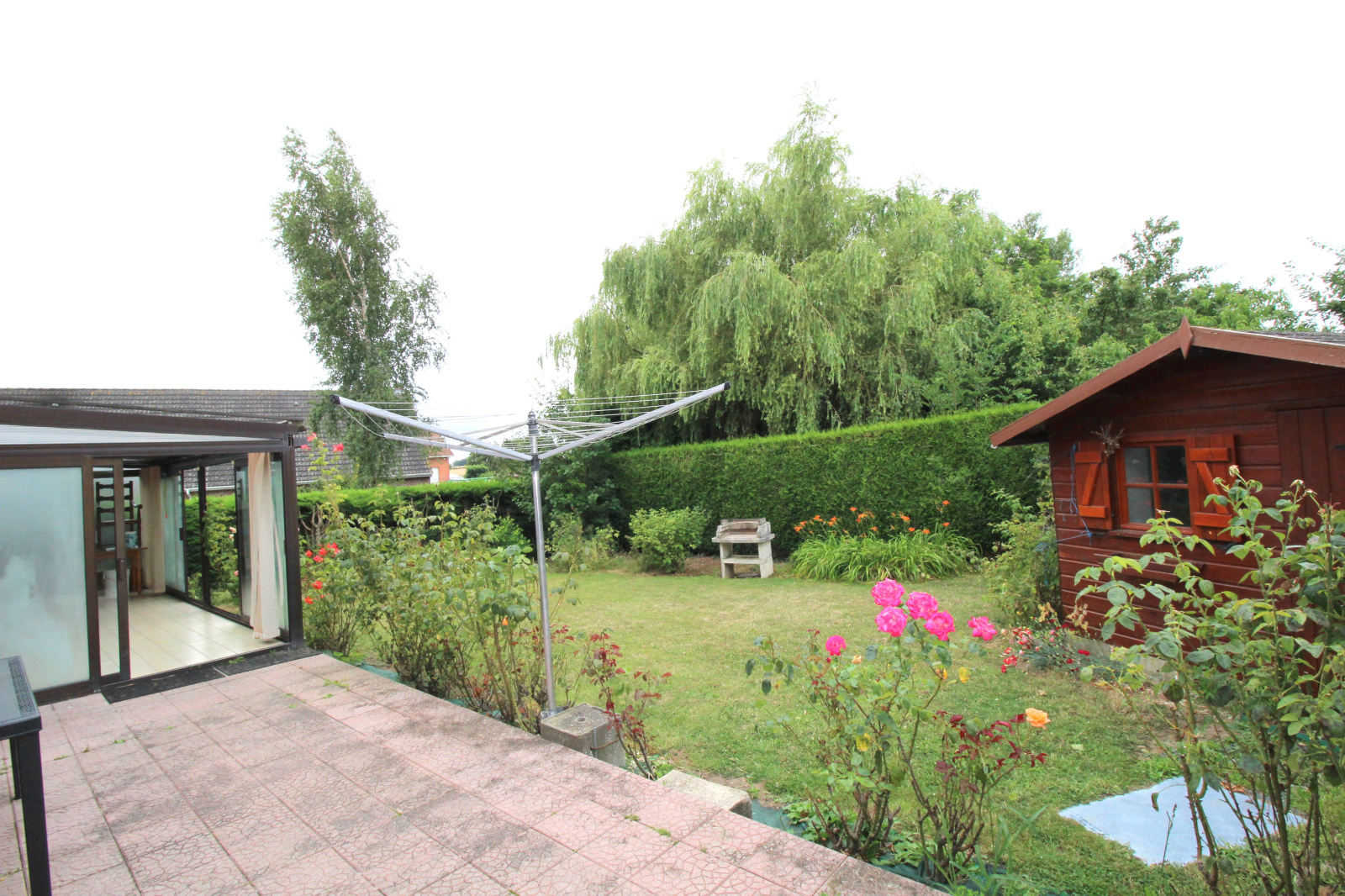 Un beau jardin fleuri, un abris de jardin et un garage complètent l'ensemble.